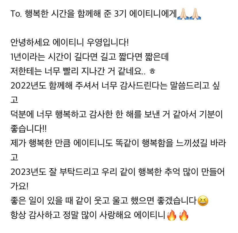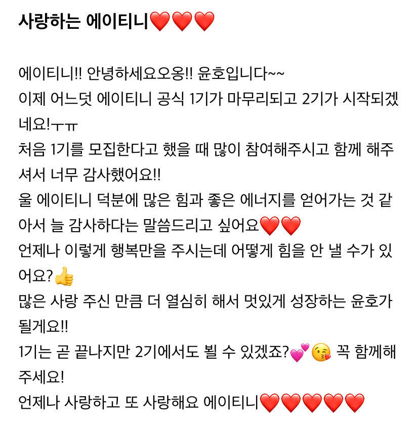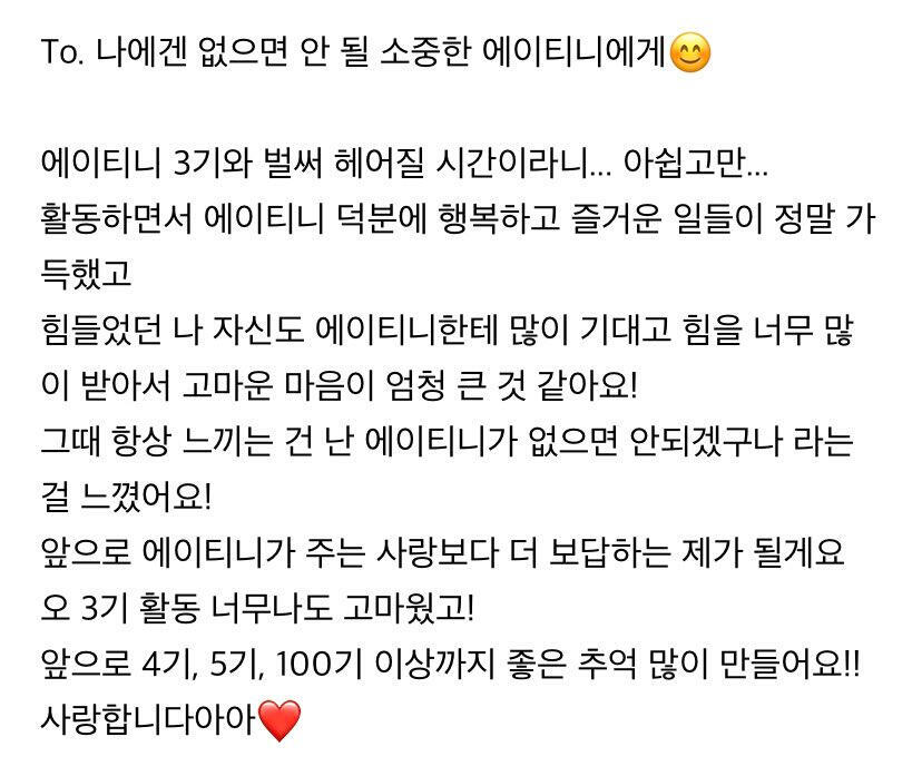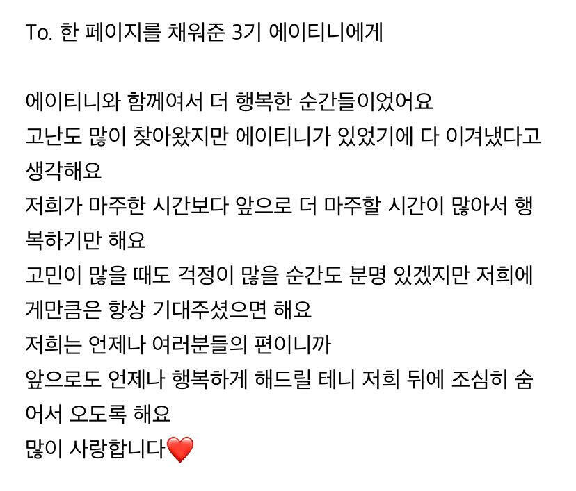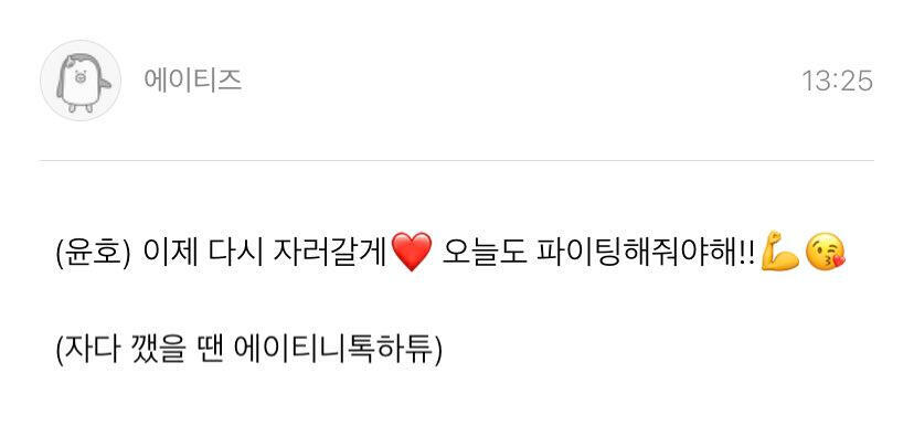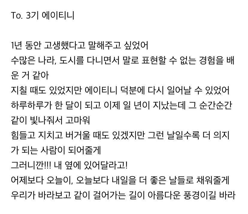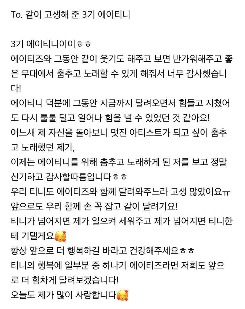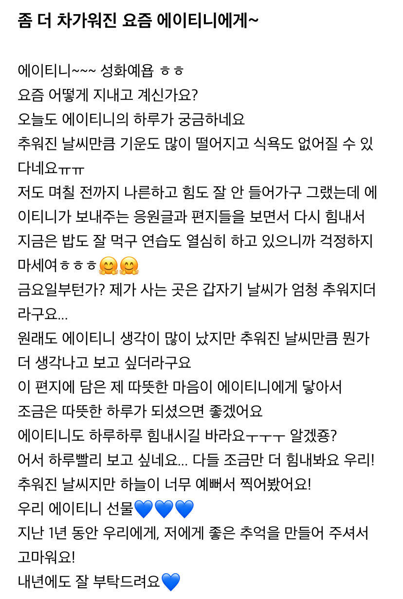 Until a few days ago, I was drowsy and I didn't have much energy, but I cheered up with letters from ATINY. Now I'm eating well and practicing hard, so don't worry ㅎㅎㅎ🤗🤗