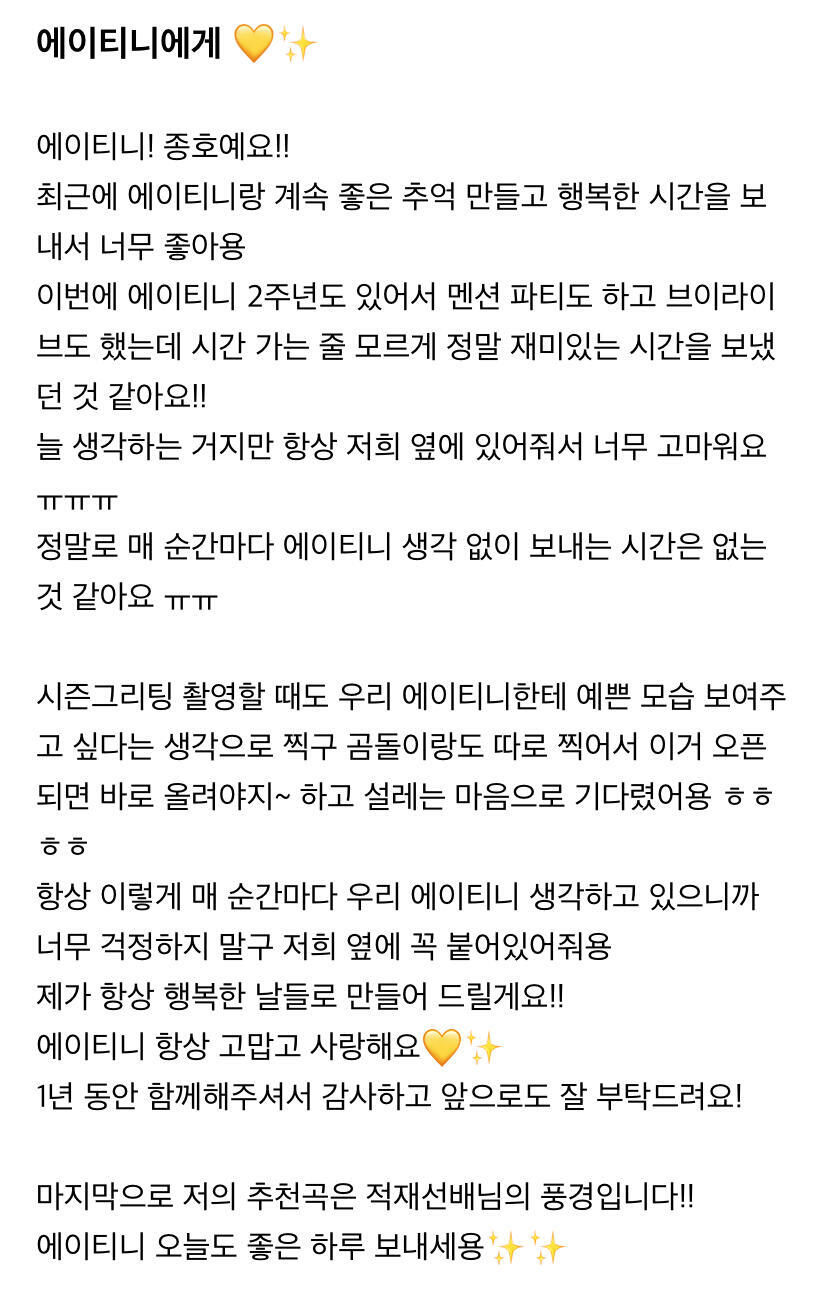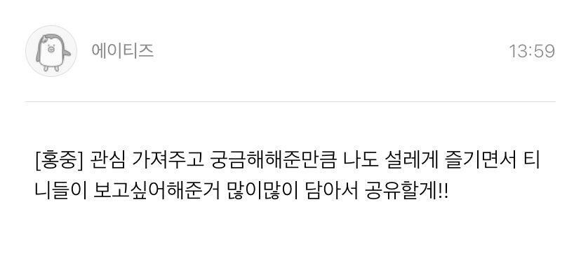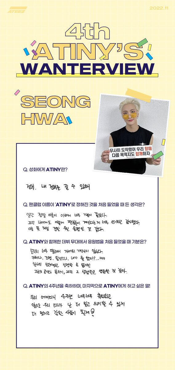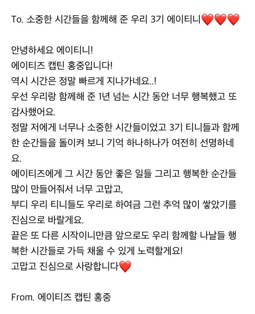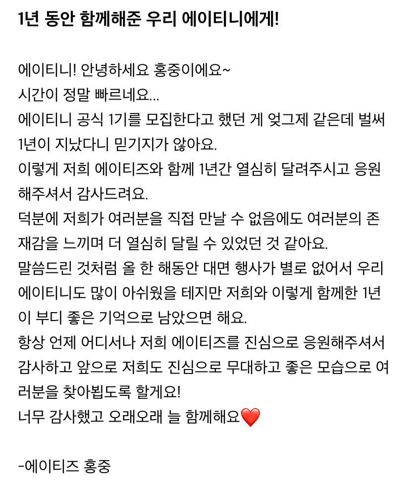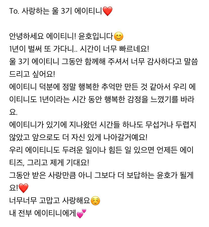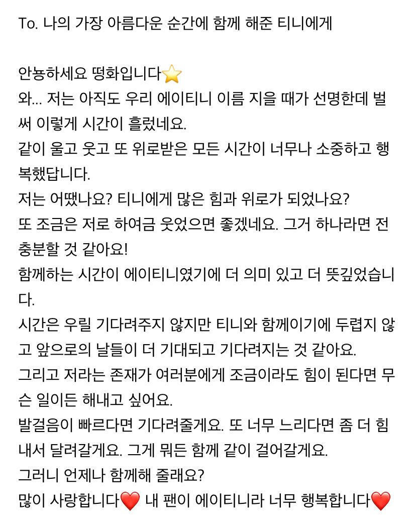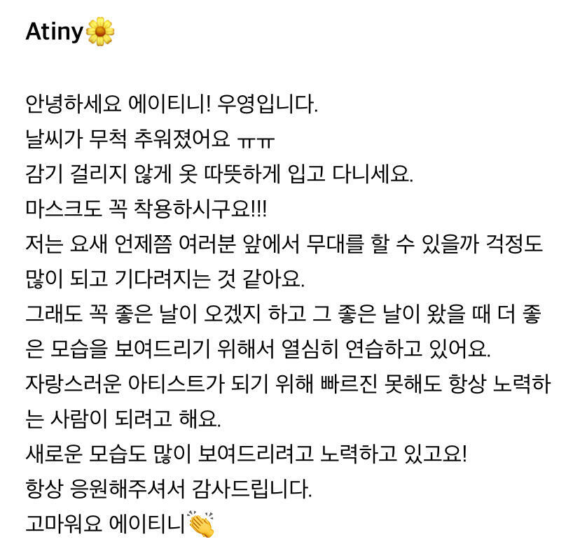 To ATINY, who is getting colder these daysATINY~~~ It's Seonghwa ㅎㅎ