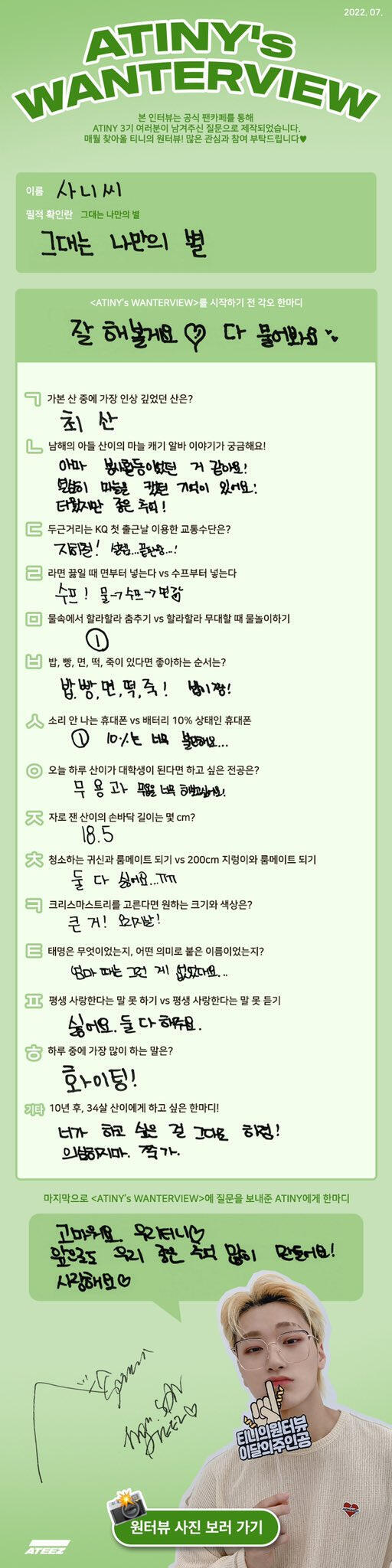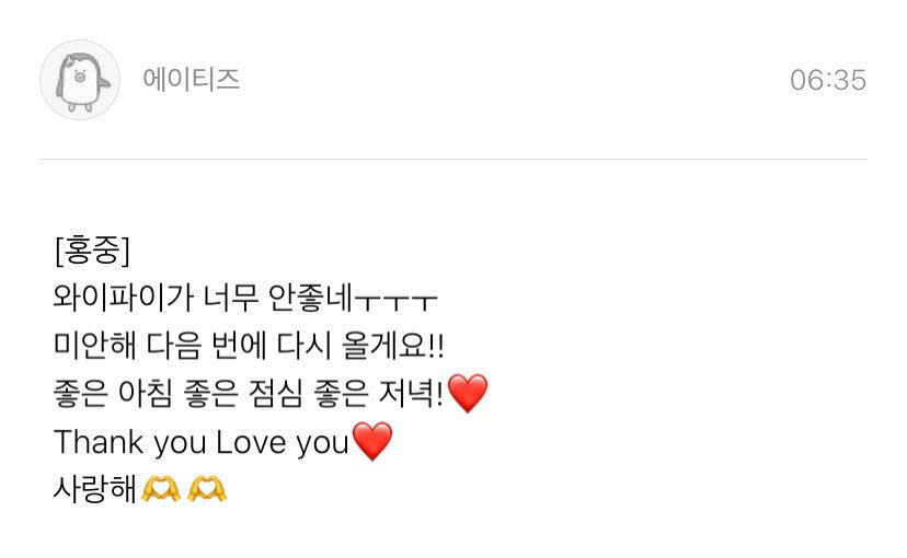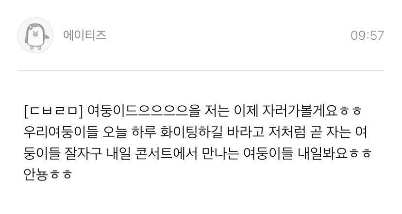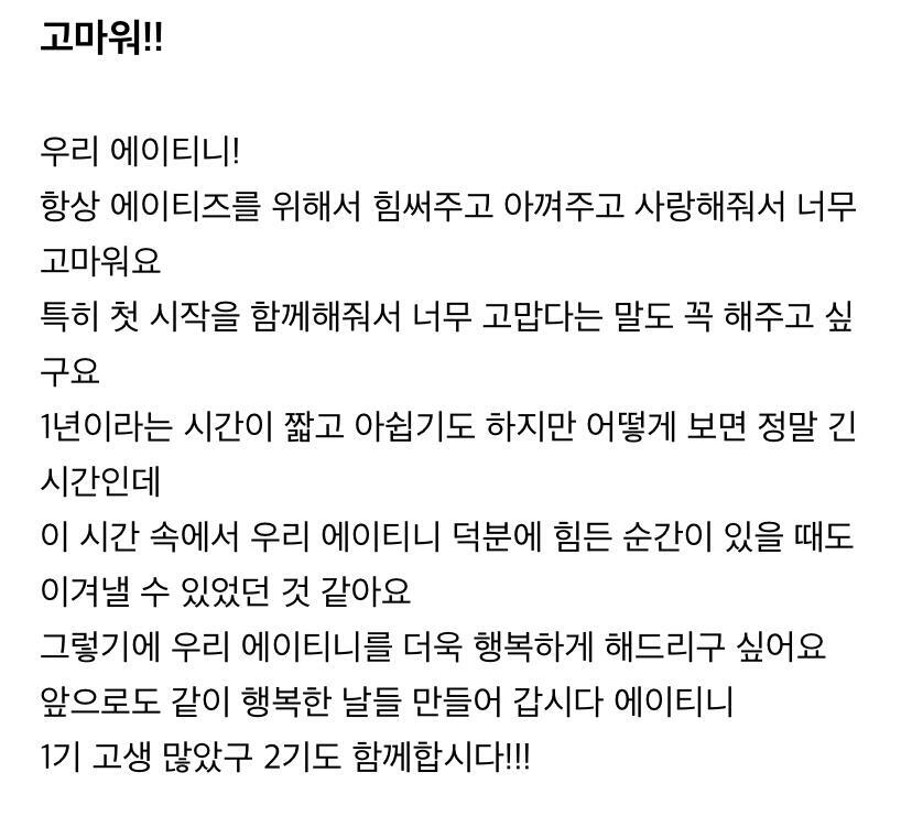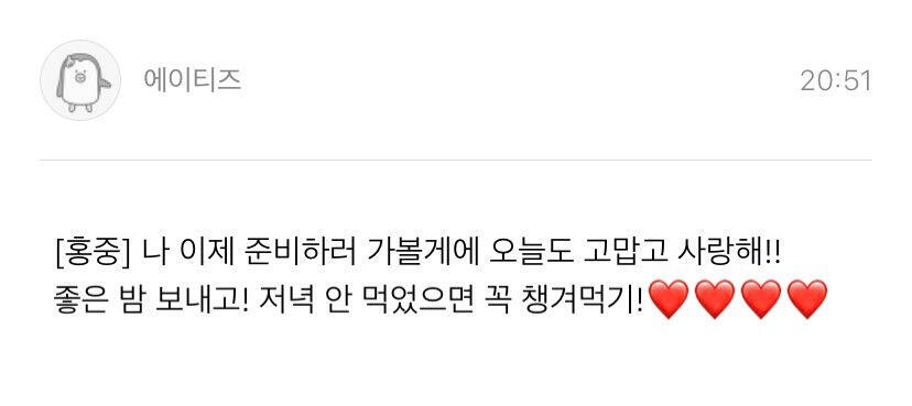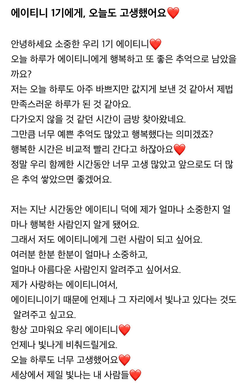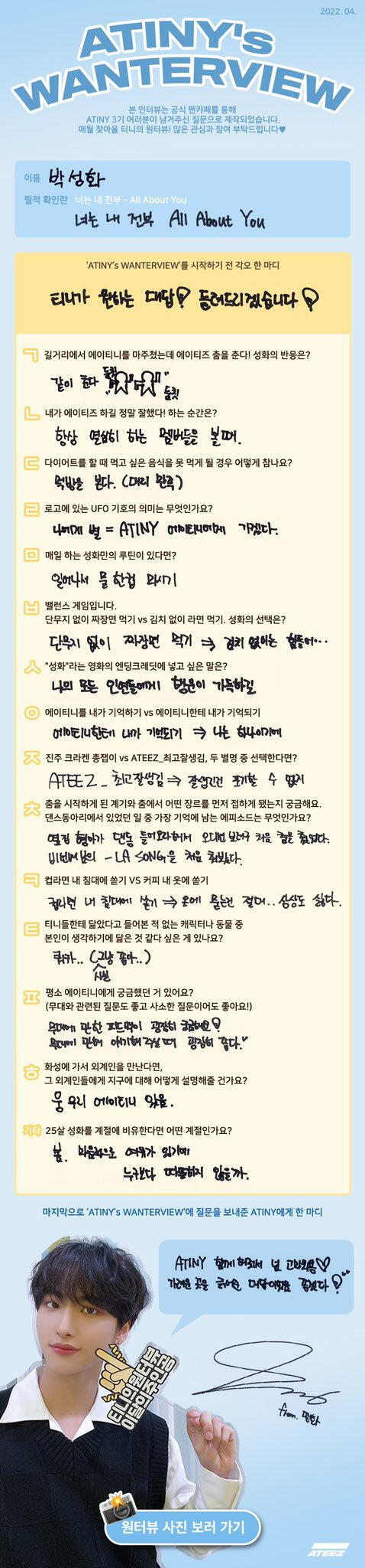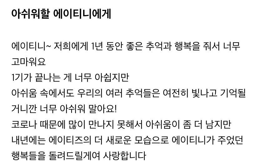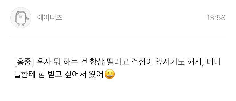 To ATINY, who is getting colder these daysATINY~~~ It's Seonghwa ㅎㅎ