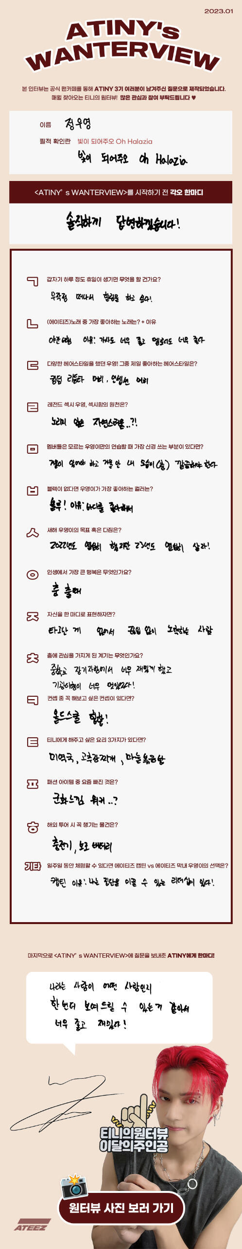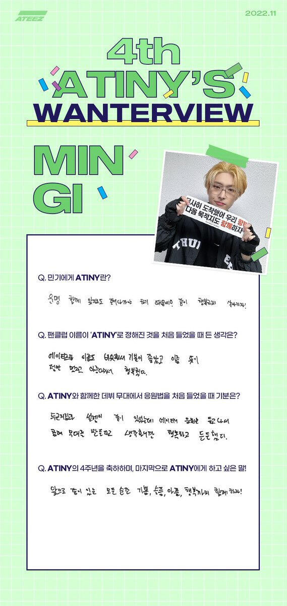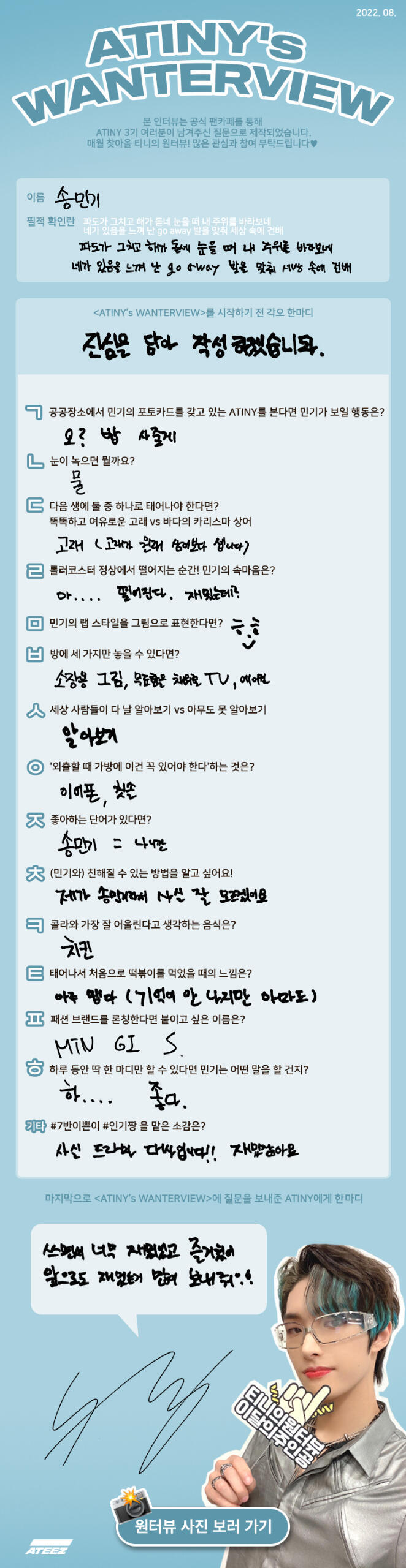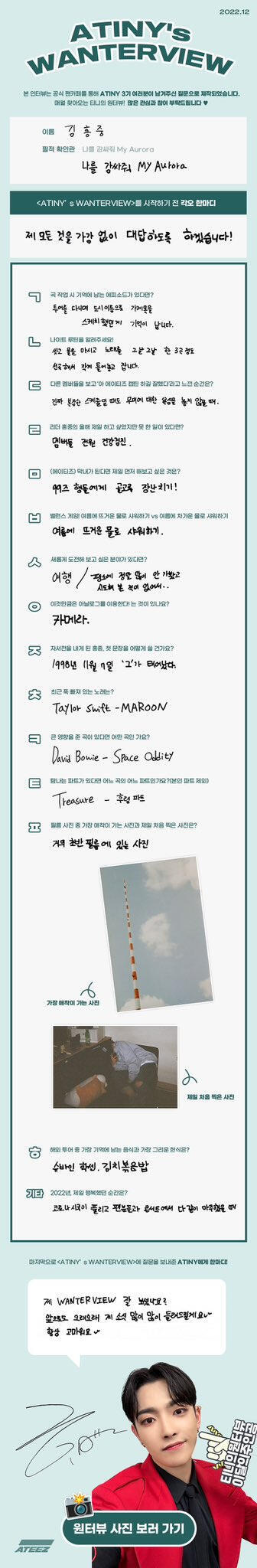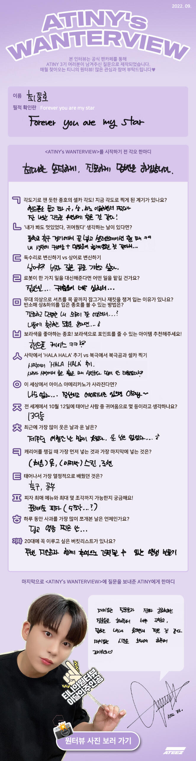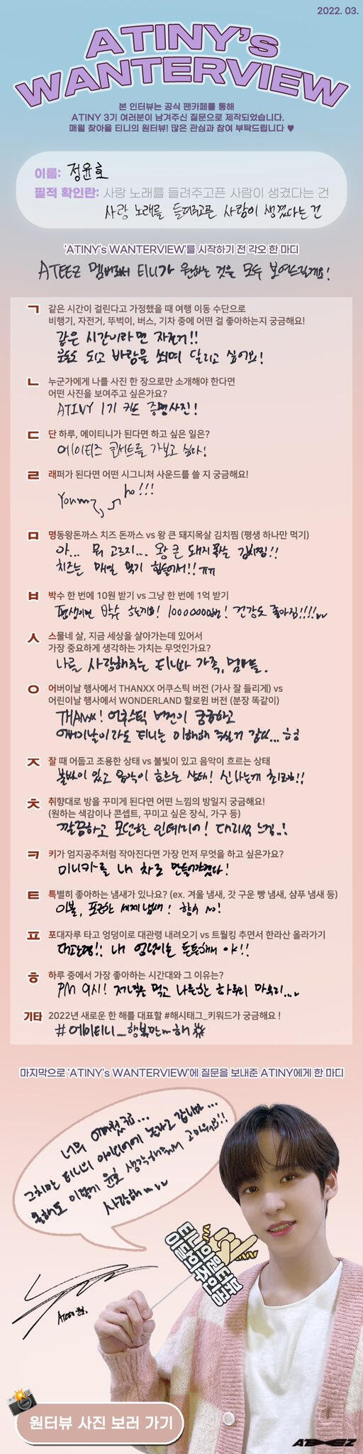To ATINY, who is getting colder these daysATINY~~~ It's Seonghwa ㅎㅎ