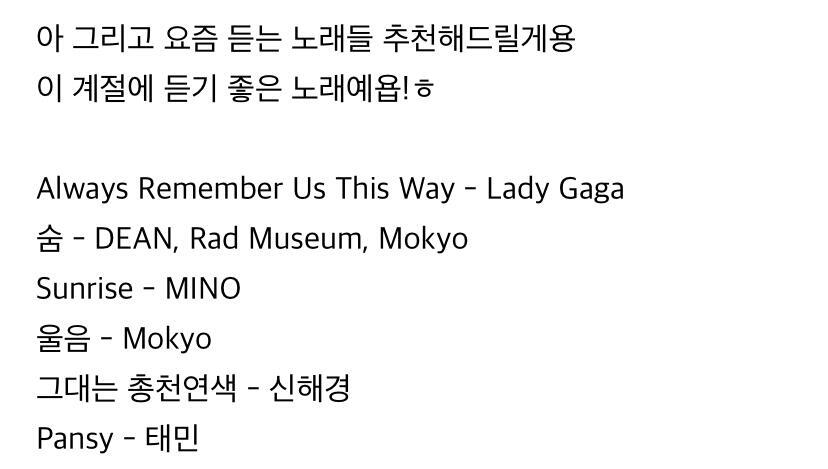 I look forward to working with you next year. 💙Oh, and I will recommend some songs that I listen to these days. It's a good song to listen to in this season! ㅎAlways Remember Us This Way - Lady Gaga