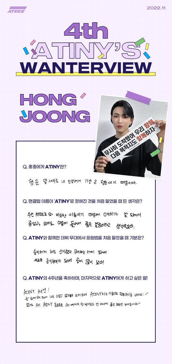 To ATINY who's has been with us for a year!ATINY! Hello, I'm Hongjoong~