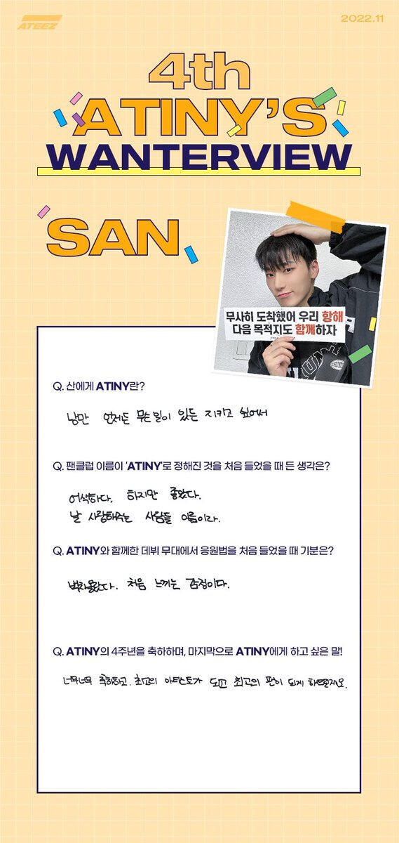 It's sad that we couldn't see each a lot because of Corona, but next year, we'll return the happiness that ATINY gave us with a new look of ATEEZ. I love you.